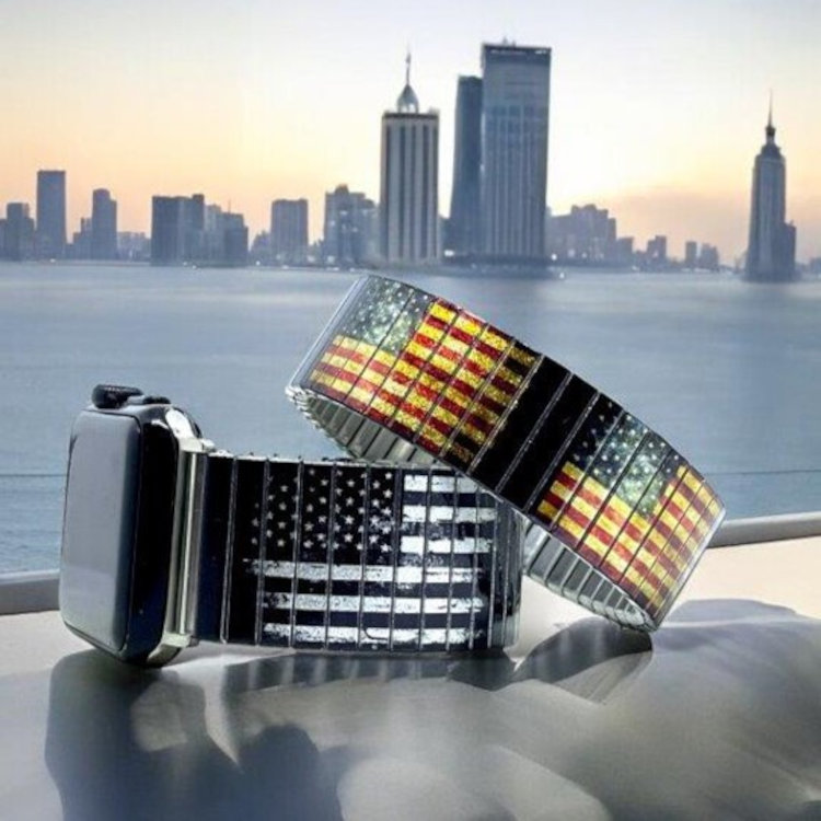 Stainless steel designer bracelet for smart watch handmade in London - Flags USA retro black Metallic
