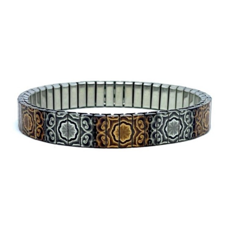 Stainless steel designer bracelet 10mm handmade in London - Flowers Cross earthy vintage Metallic