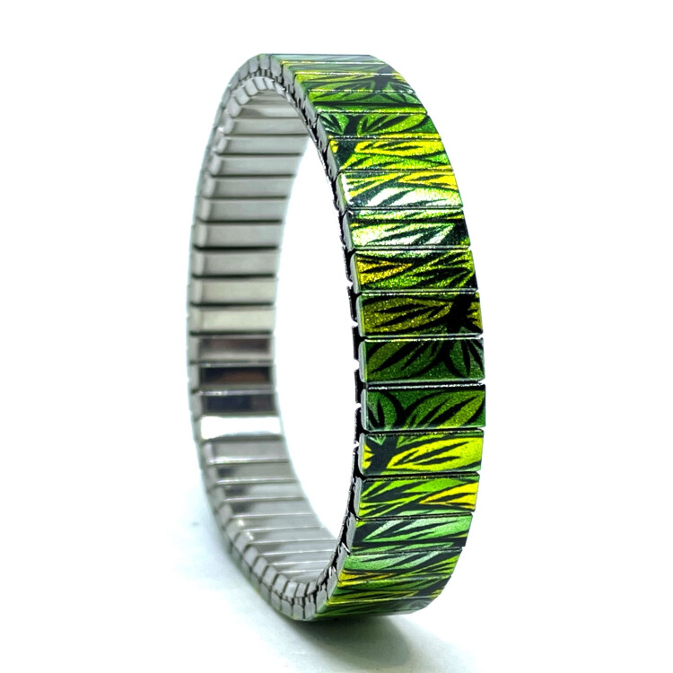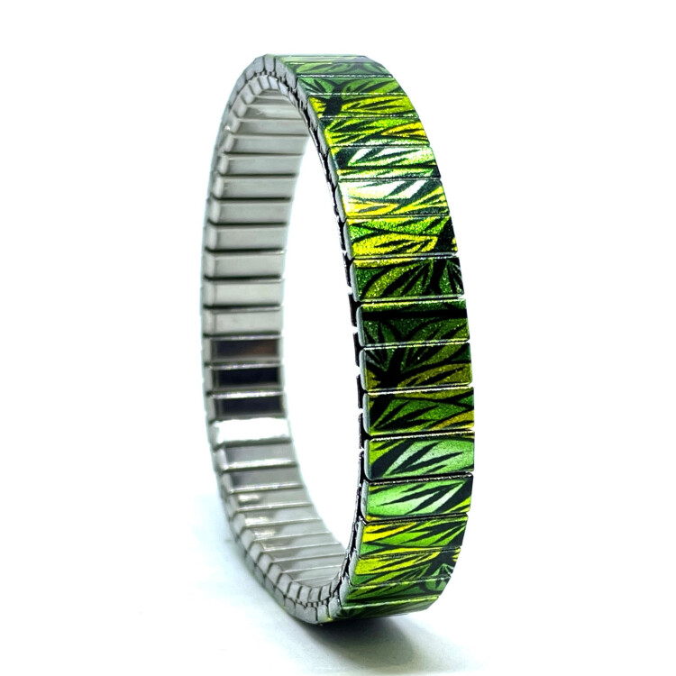 Stainless steel designer bracelet 10mm handmade in London - Flowers Daisies green forest Metallic