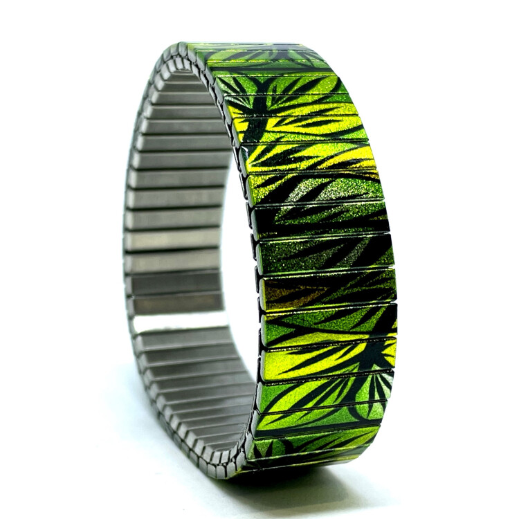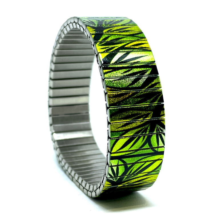 Stainless steel designer bracelet 18mm handmade in London - Flowers Daisies green forest Metallic