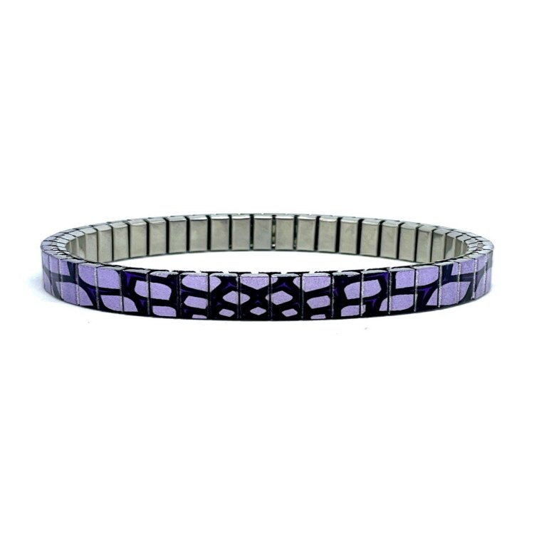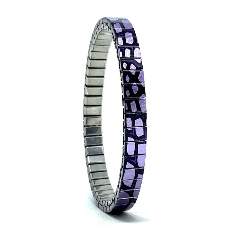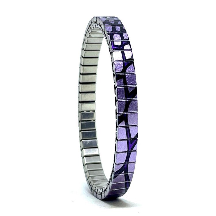 Stainless steel designer bracelet 6mm handmade in London - Flowers Daisies purple spider Metallic