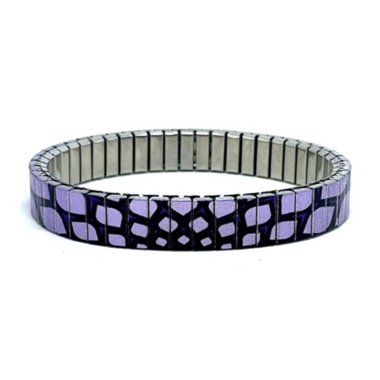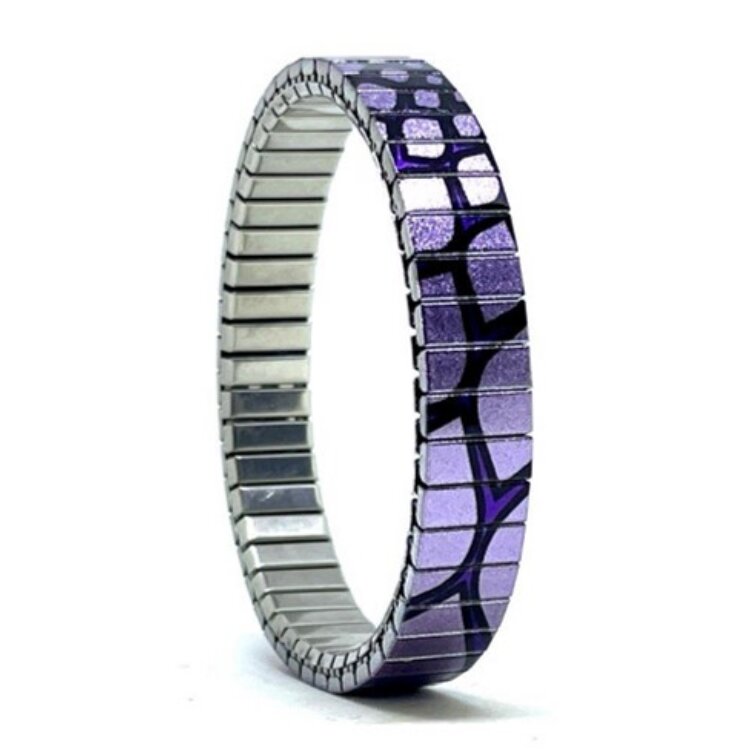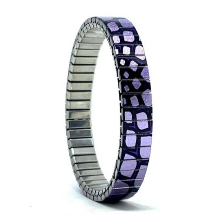 Stainless steel designer bracelet 10mm handmade in London - Flowers Daisies purple spider Metallic
