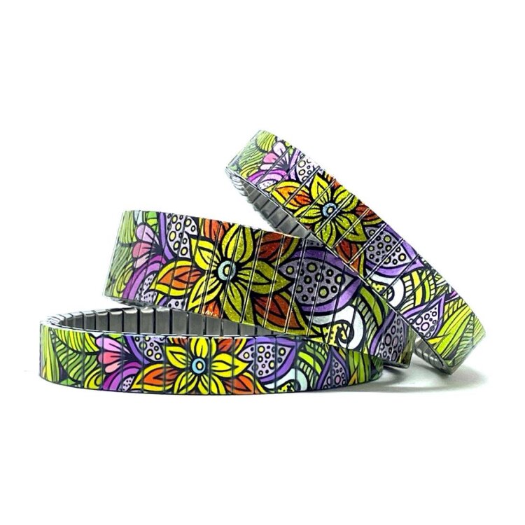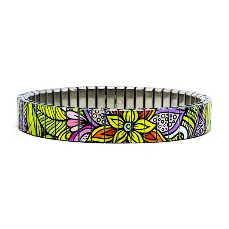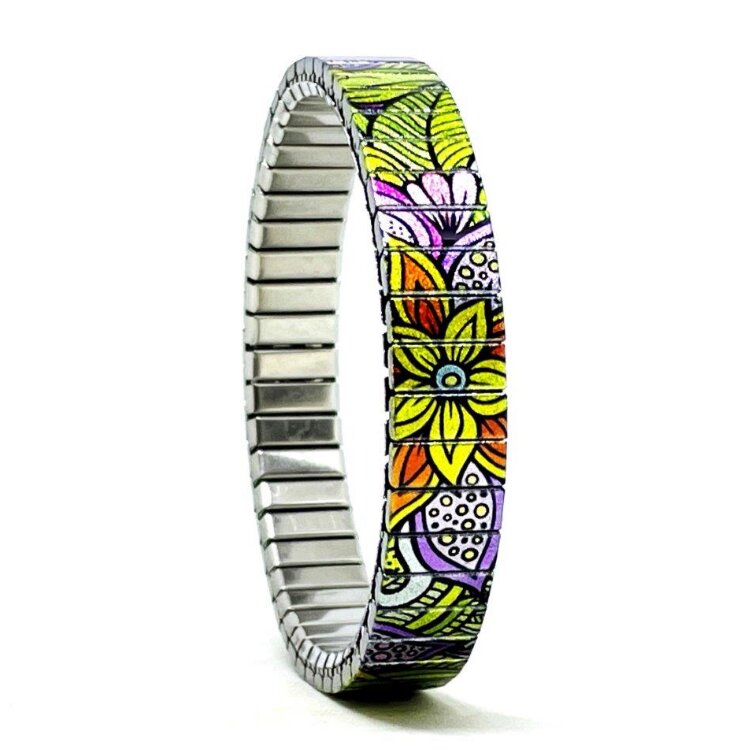 Stainless steel designer bracelet 10mm handmade in London - Flowers Daisies pastel psychedelica Metallic