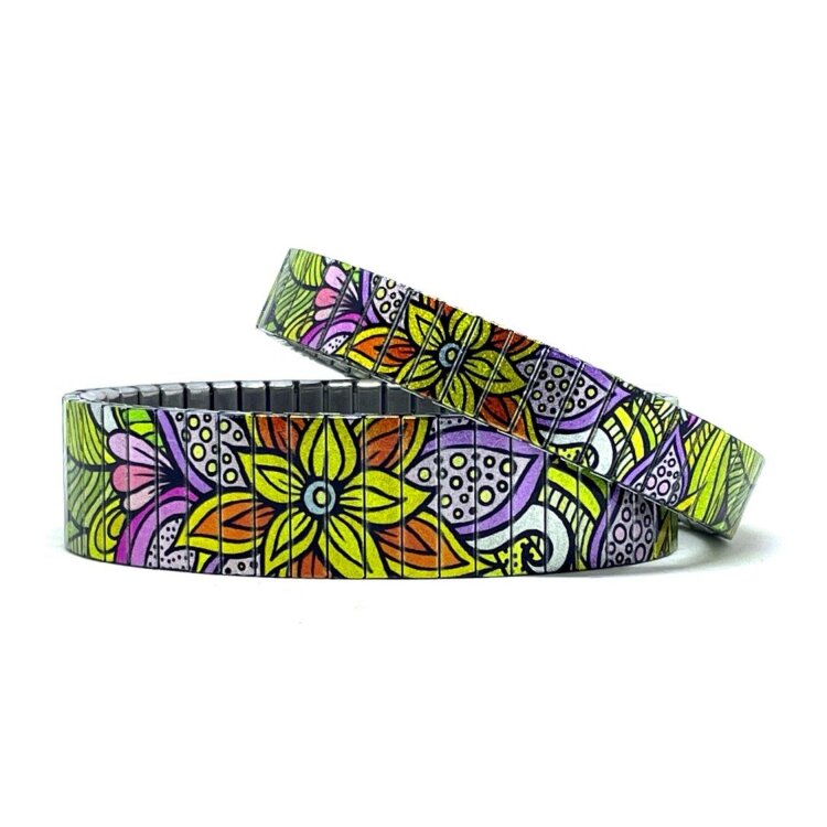 Stainless steel designer bracelet 18mm handmade in London - Flowers Daisies pastel psychedelica Metallic