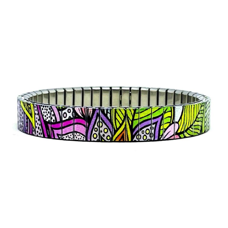 Stainless steel designer bracelet 10mm handmade in London - Flowers Daisies pastel leavs Metallic