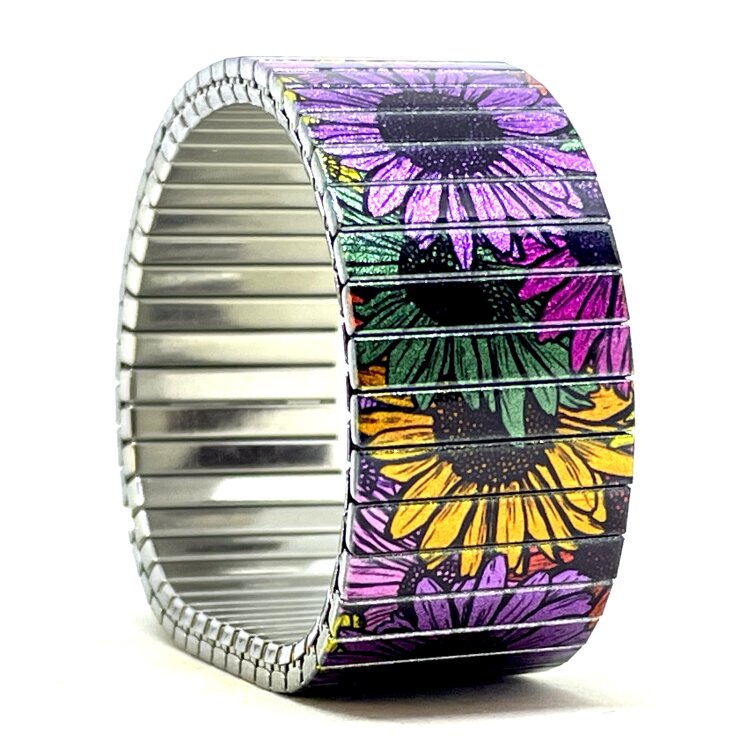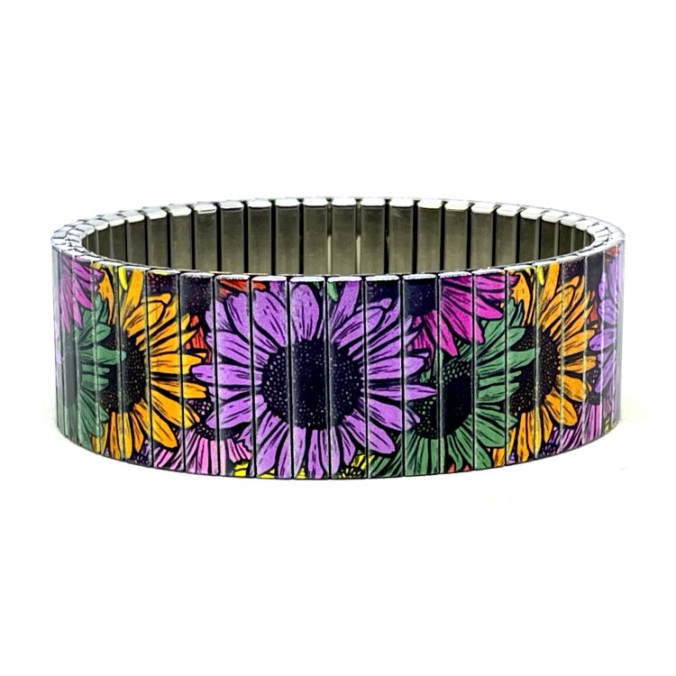 Stainless steel designer bracelet 22mm handmade in London - Flowers Daisies intense Metallic