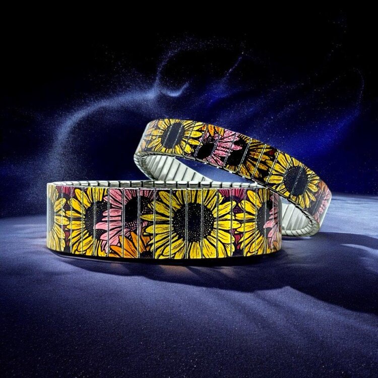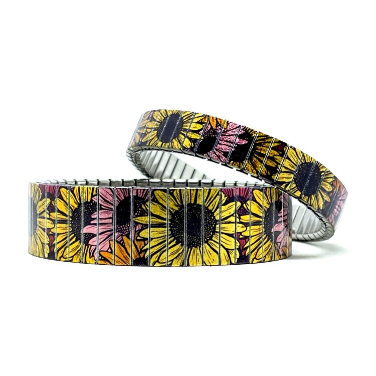 Stainless steel designer bracelet 18mm handmade in London - Flowers Daisies boho chic Metallic