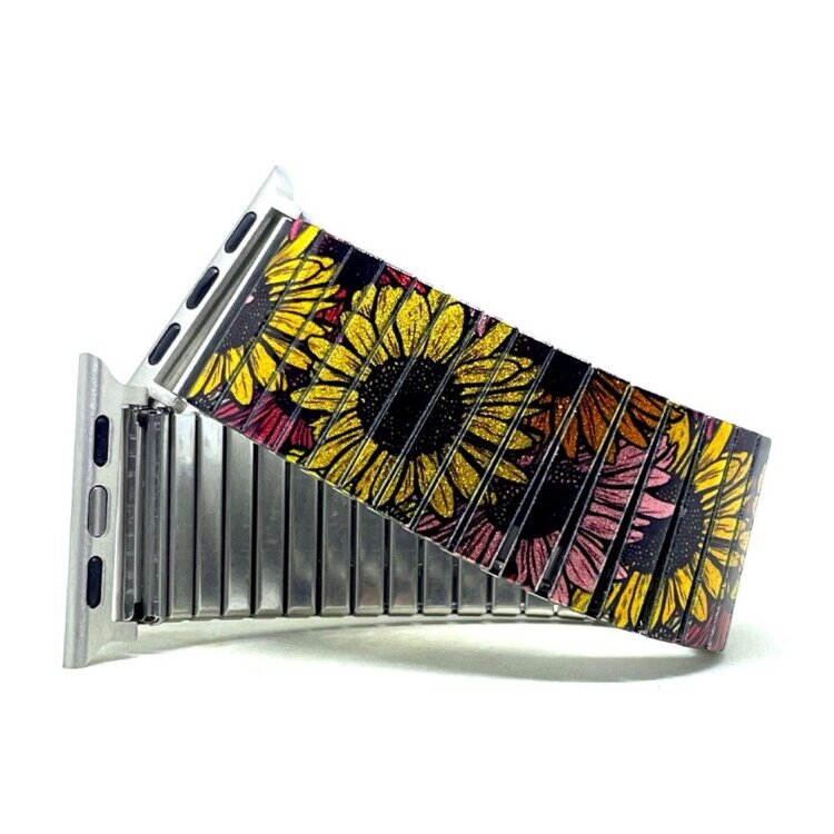 Stainless steel designer bracelet for smart watch 18mm handmade in London - Flowers Daisies boho chic Metallic