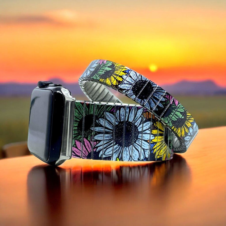 Stainless steel designer bracelet for smart watch 22mm handmade in London - Flowers Daisies beauty Metallic