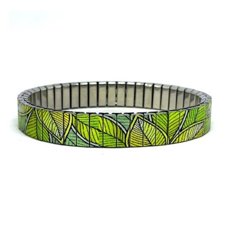 Stainless steel designer bracelet 10mm handmade in London - Flowers Garden petals jungle Metallic