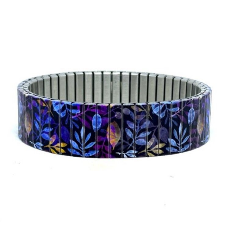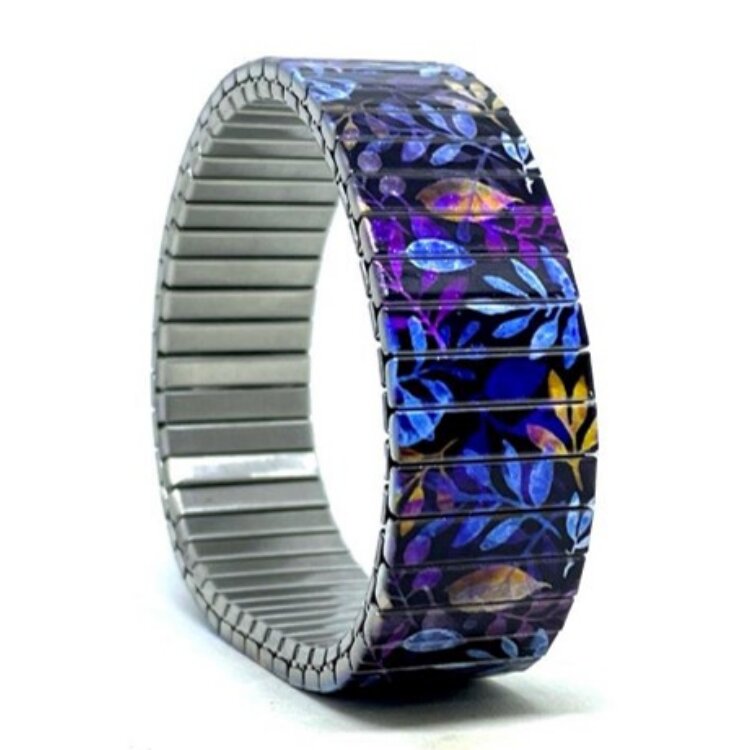 Stainless steel designer bracelet 18mm handmade in London - Flowers Garden bohemian Metallic