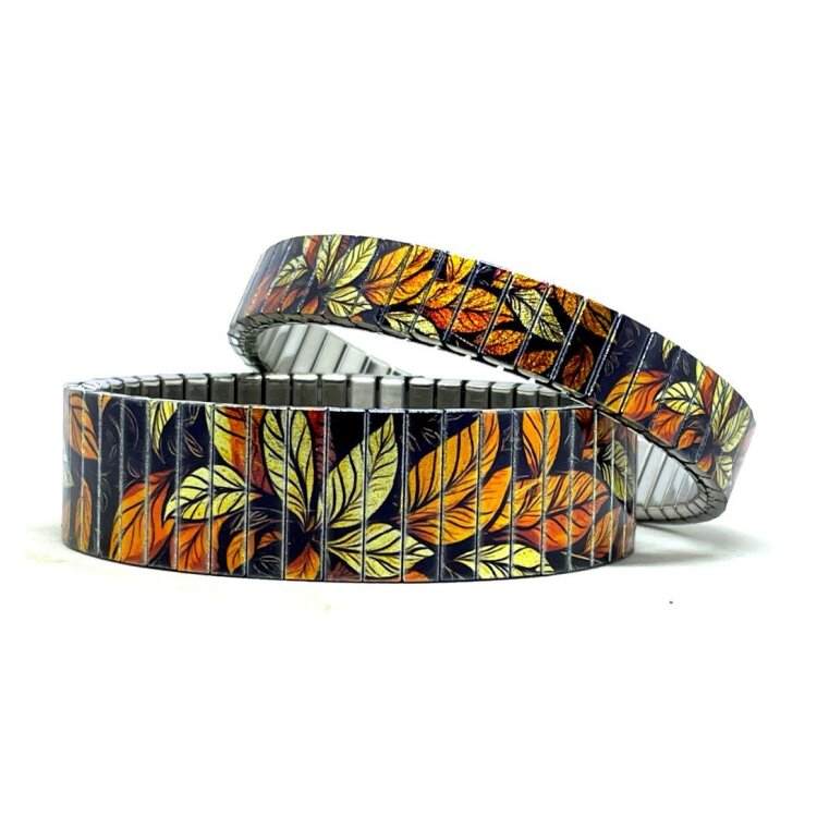 Stainless steel designer bracelet 18mm handmade in London - Flowers Garden intense autumn Metallic