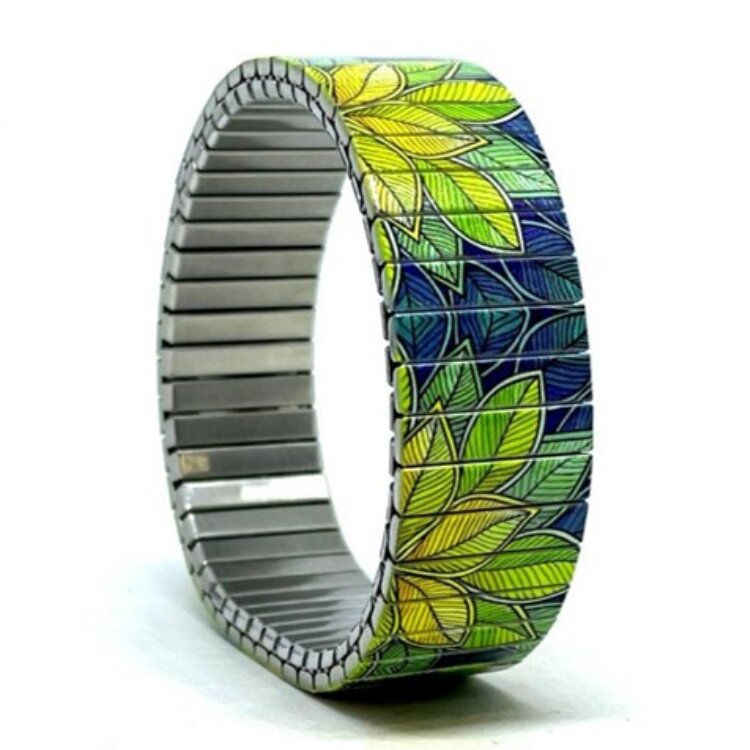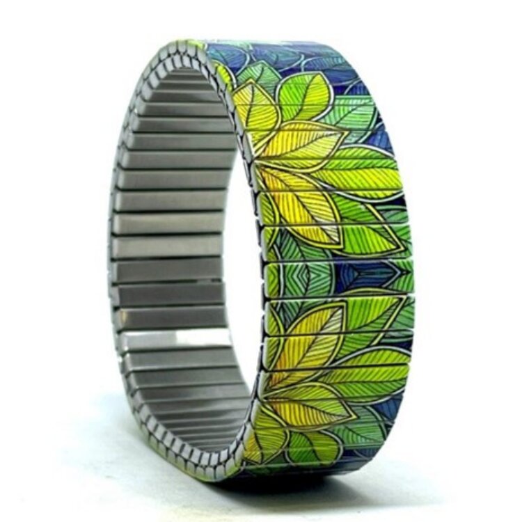 Stainless steel designer bracelet 18mm handmade in London - Flowers Garden green jungle