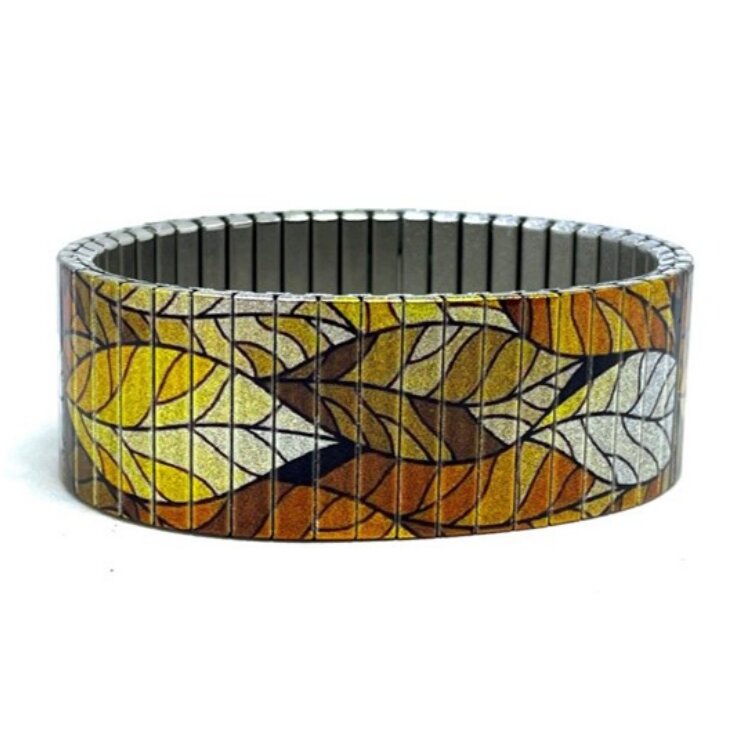 Stainless steel designer bracelet 22mm handmade in London - Flowers Garden bohemian rhapsody Metallic