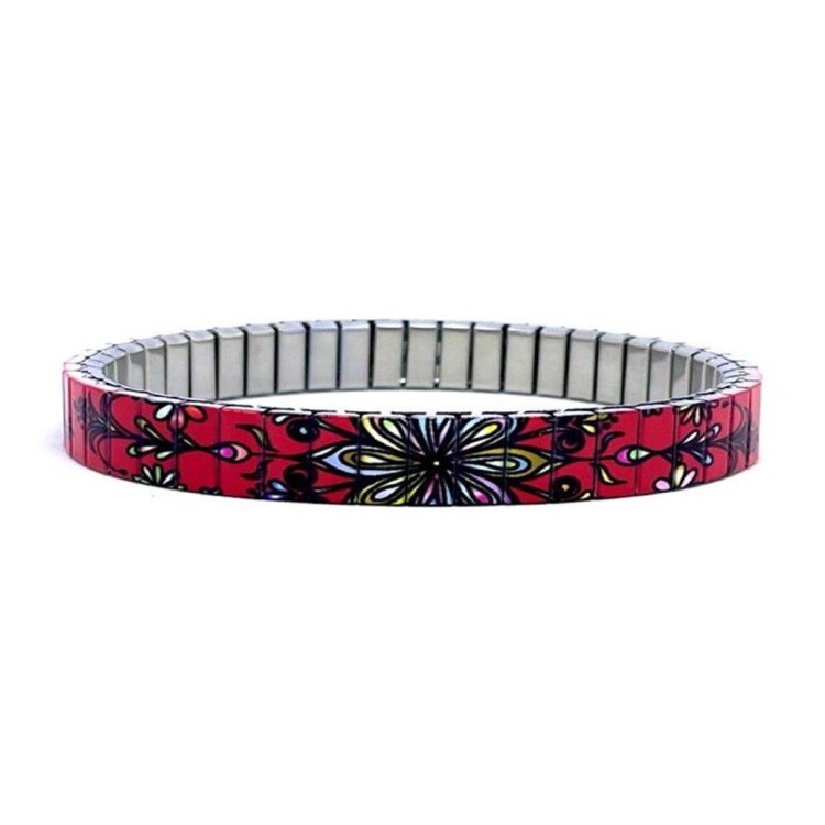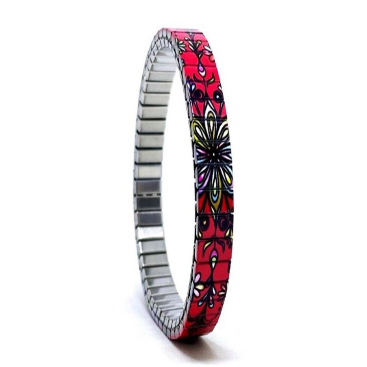 Stainless steel designer bracelet 6mm handmade in London - Flowers Mandala red extravaganza