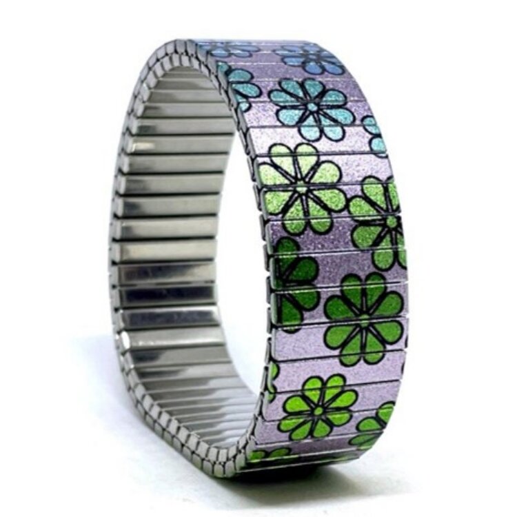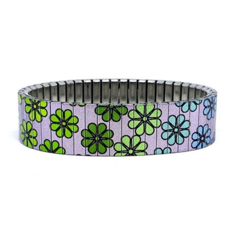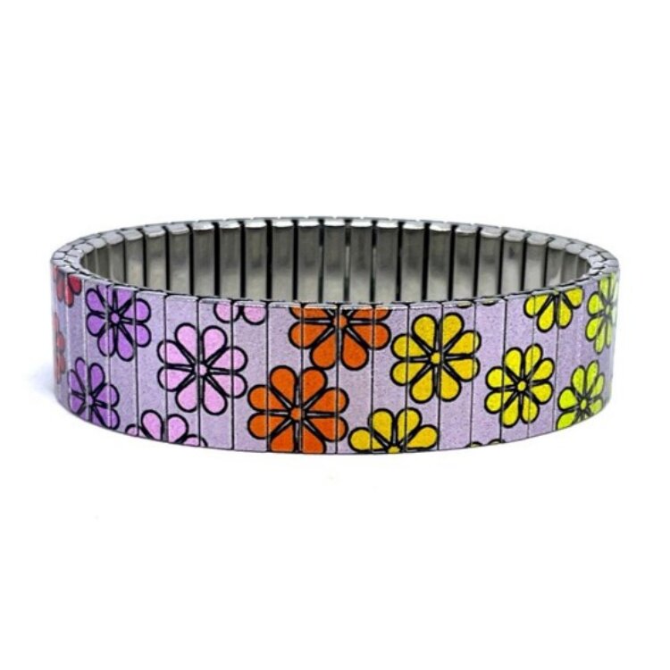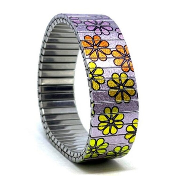 Stainless steel designer bracelet 18mm handmade in London - Flowers Mandala purple sun Metallic