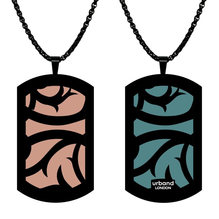 Stainless steel designer double-sided pendant 29mm handmade in London - Hippie turquoise tattoo Metallic