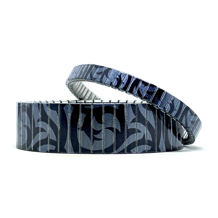 Stainless steel designer bracelet 6mm handmade in London - Hippie subtle graphite tattoo Metallic