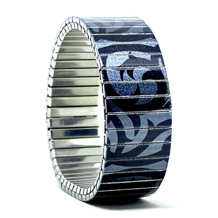 Stainless steel designer bracelet 18mm handmade in London - Hippie subtle graphite tattoo Metallic