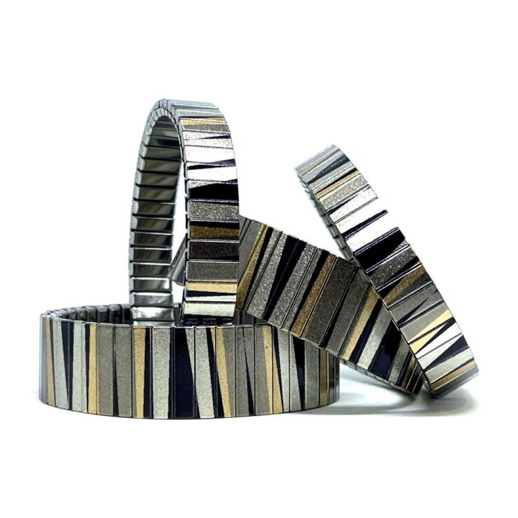 Stainless steel designer bracelet 22mm handmade in London - Lines Art timeless gold Metallic