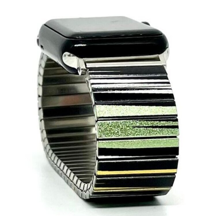 Stainless steel designer bracelet for smart watch 18mm handmade in London - Lines Art emeralds Metallic