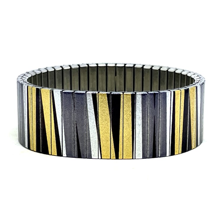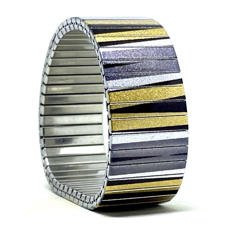 Stainless steel designer bracelet 22mm handmade in London - Lines Art graphite gold Metallic