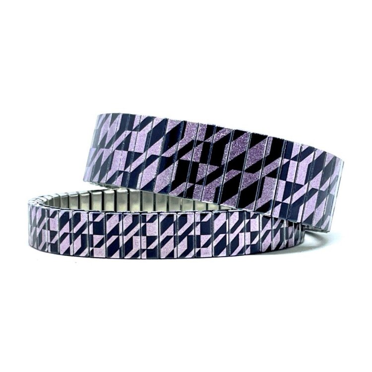 Stainless steel designer bracelet 10mm handmade in London - Lisbon Inspired lavander pavement Metallic