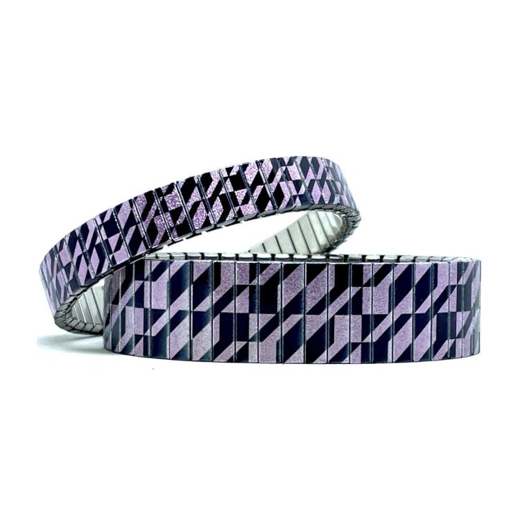 Stainless steel designer bracelet 18mm handmade in London - Lisbon Inspired lavander pavement Metallic