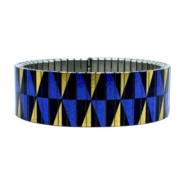 Stainless steel designer bracelet 18mm handmade in London - Lisbon Inspired golden blue azulejo Metallic