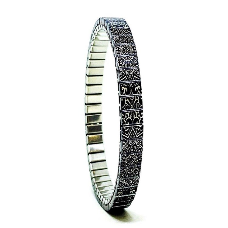 Stainless steel designer bracelet 6mm handmade in London - Mandala Daisies cool flowers Metallic