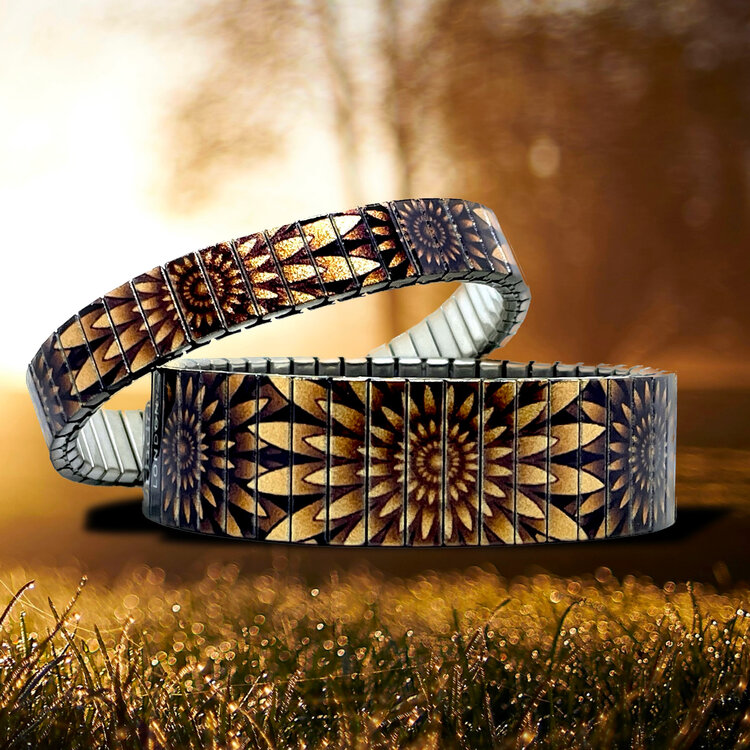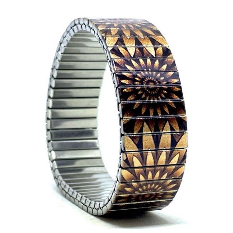 Stainless steel designer bracelet 18mm handmade in London - Mandala Daisies vintage copper Metallic