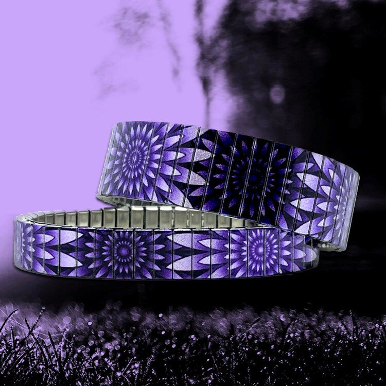 Stainless steel designer bracelet 10mm handmade in London - Mandala Daisies vintage purple Metallic