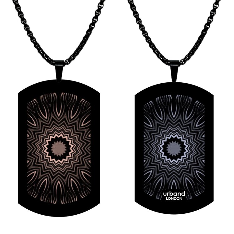 Categories: Double-sided pendants, Contemporary pendants, Wearable art, Gift ideas, British designer, Art, Designer pendant, Unique pendants, Original pendant, Cool pendants, Tag pendants, Fashionable pendants, Stainless steel pendants, Black chain, Links chain, Unisex pendands, Personalised pendants, Contemporary Jewelery, Handmade pendants