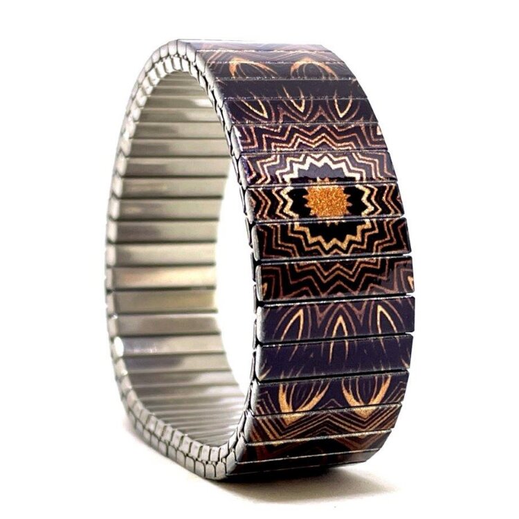 Stainless steel designer bracelet 18mm handmade in London - Mandala Irish vintage copper fireworks Metallic