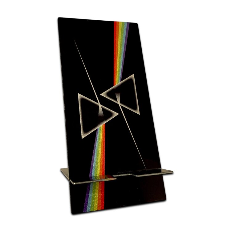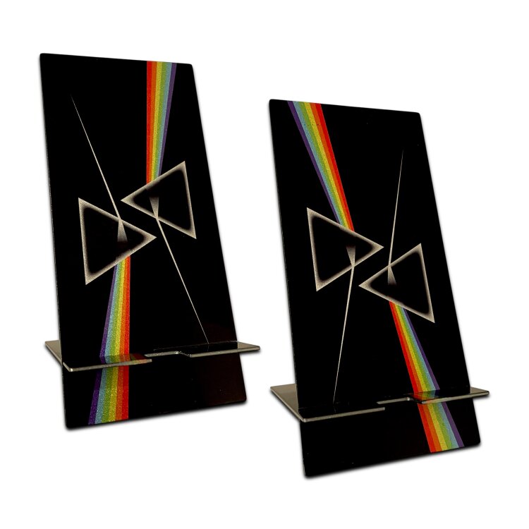 Stainless steel designer double-sided smartphone stand handmade in London - Music and Films dark side of the moon, Pink Floyd inspired Metallic