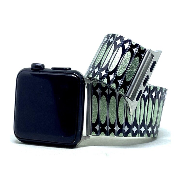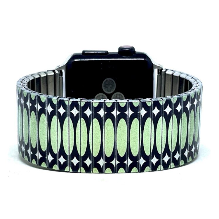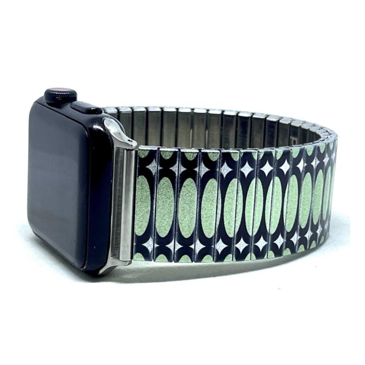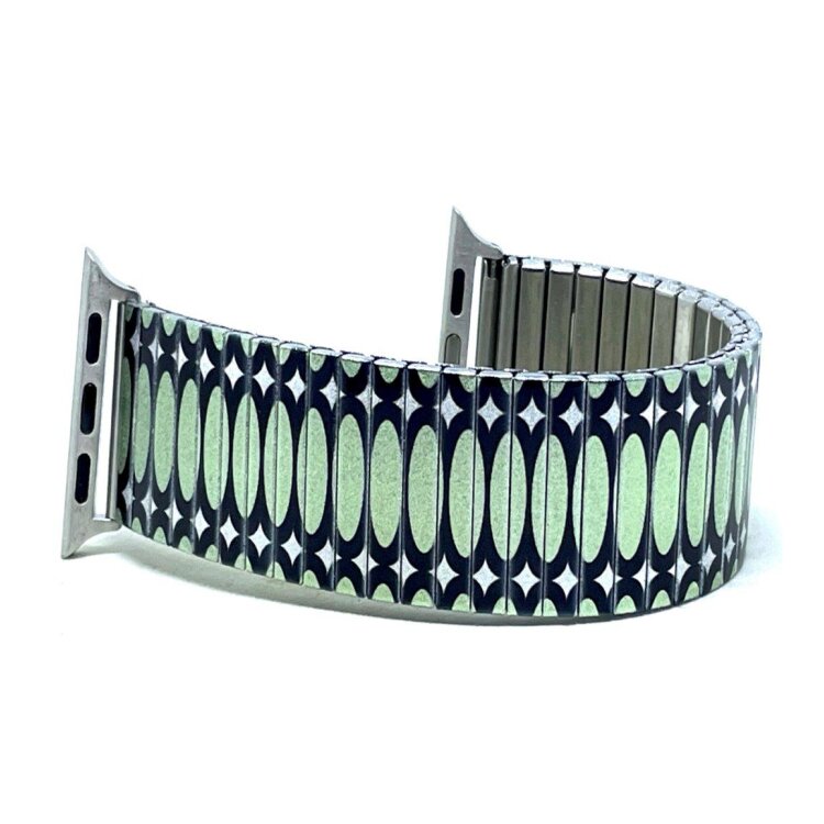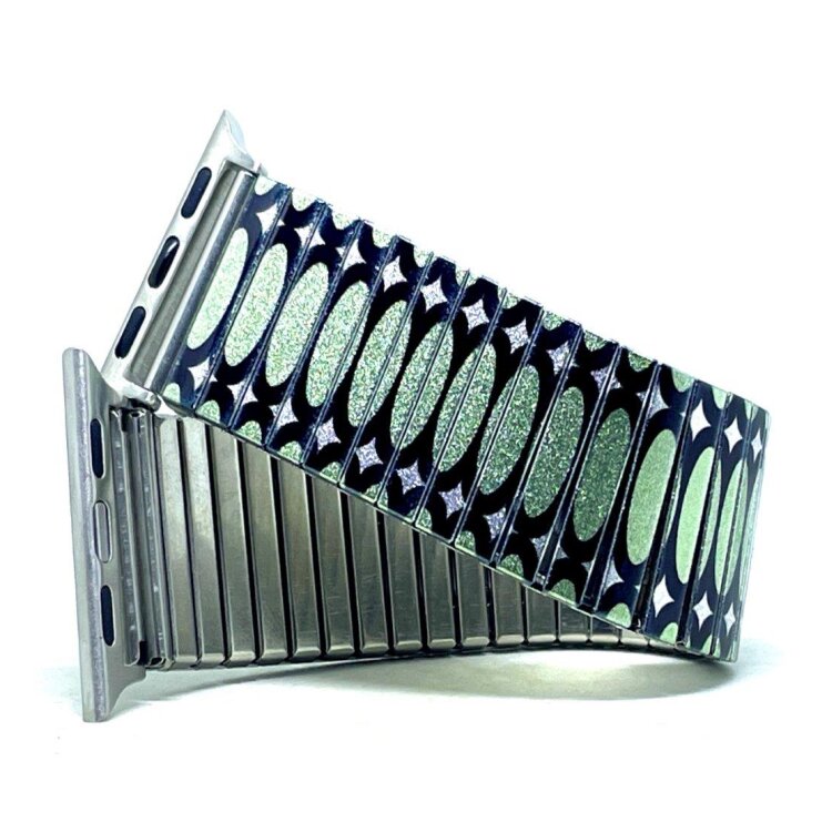 Stainless steel designer bracelet for smart watch 22mm handmade in London - Ovals Stretched green Metallic