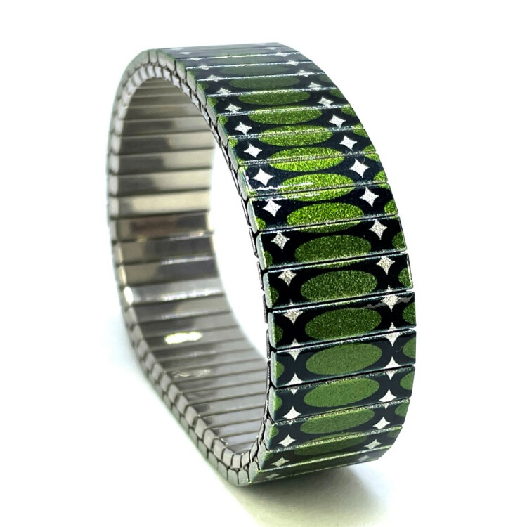 Stainless steel designer bracelet 18mm handmade in London - Ovals Stretched racing green Metallic