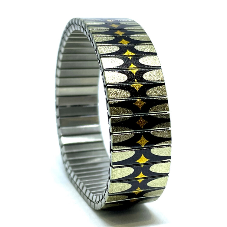 Stainless steel designer bracelet 18mm handmade in London - Ovals Stretched champagne stars Metallic