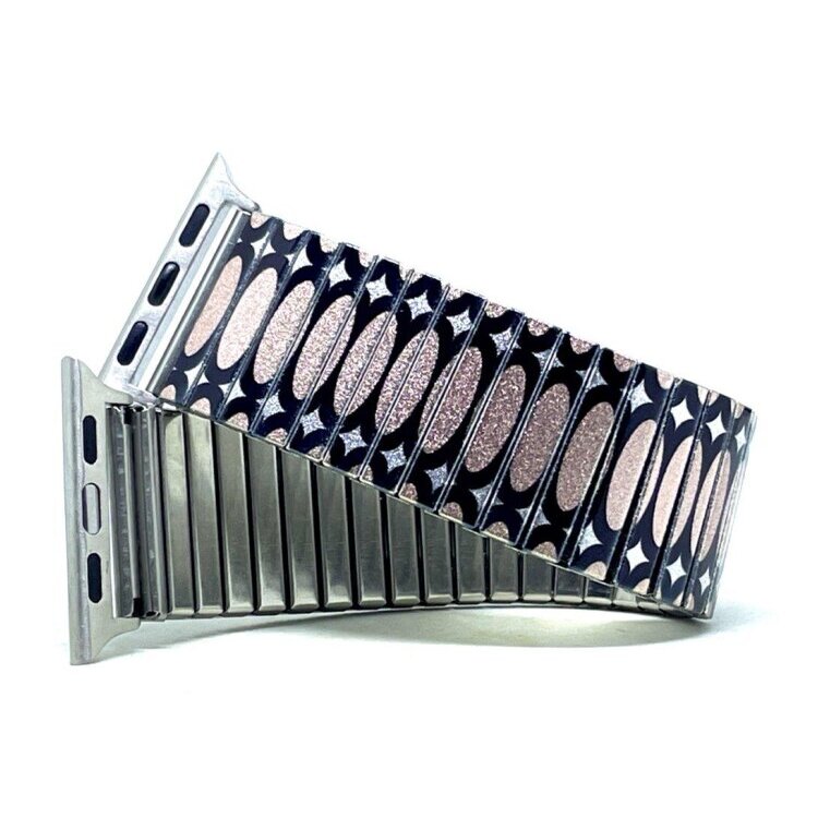 Stainless steel designer bracelet for smart watch 18mm handmade in London - Ovals Stretched rose Metallic