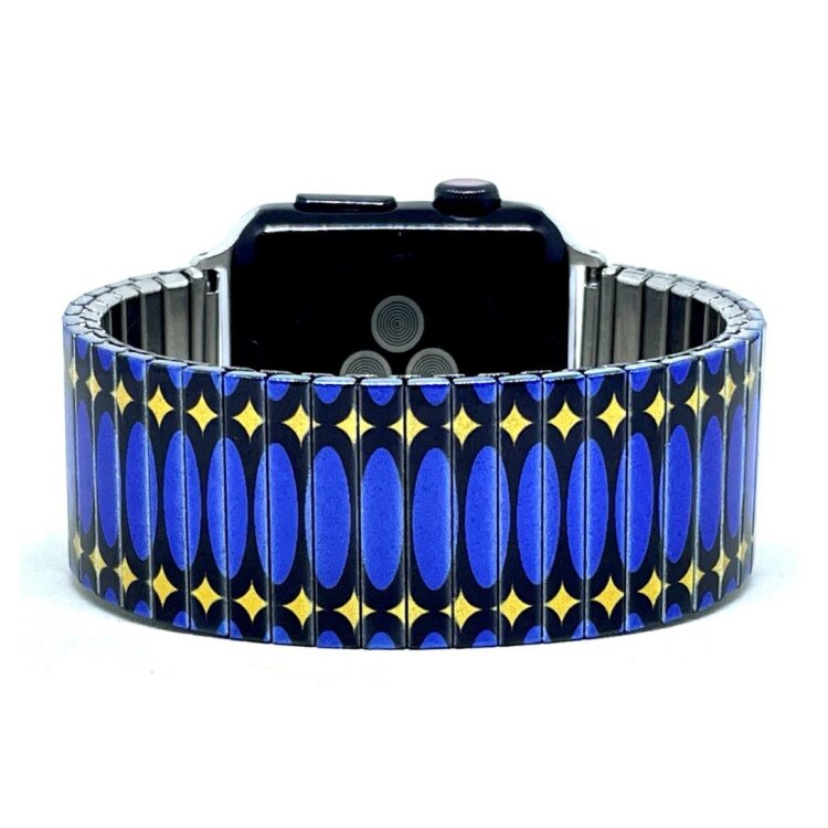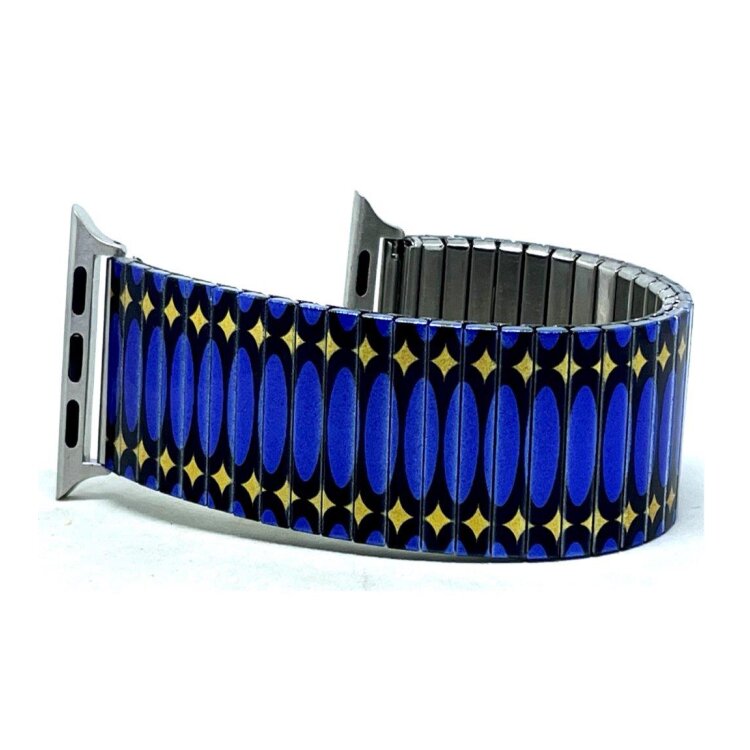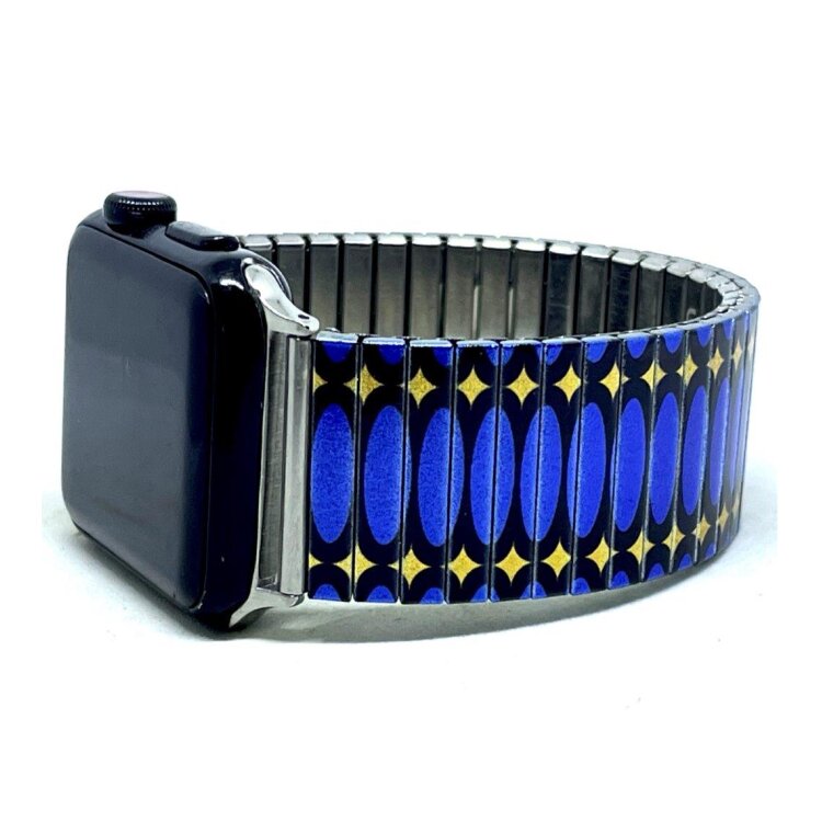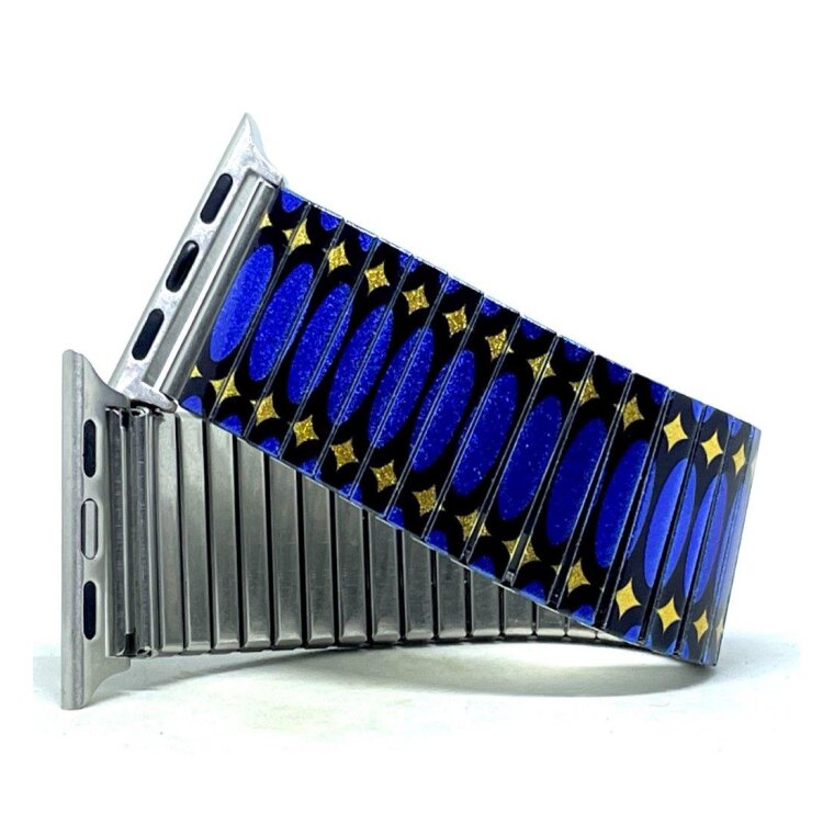 Stainless steel designer bracelet for smart watch 22mm handmade in London - Ovals Stretched blue Metallic