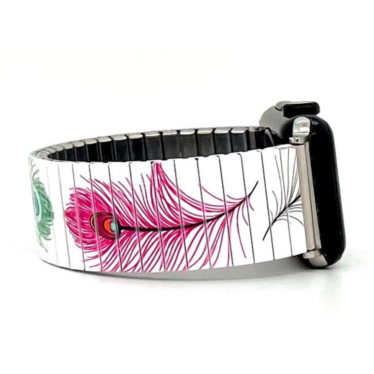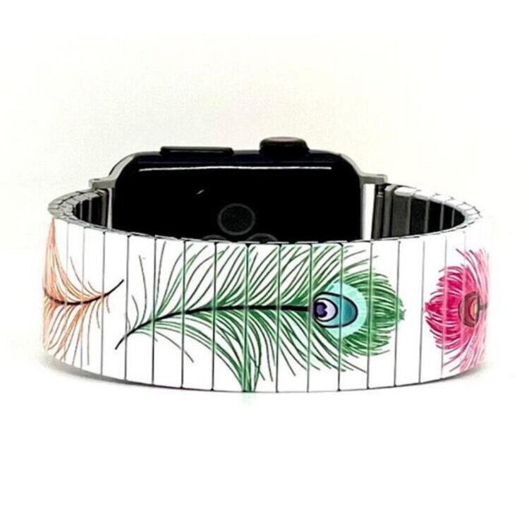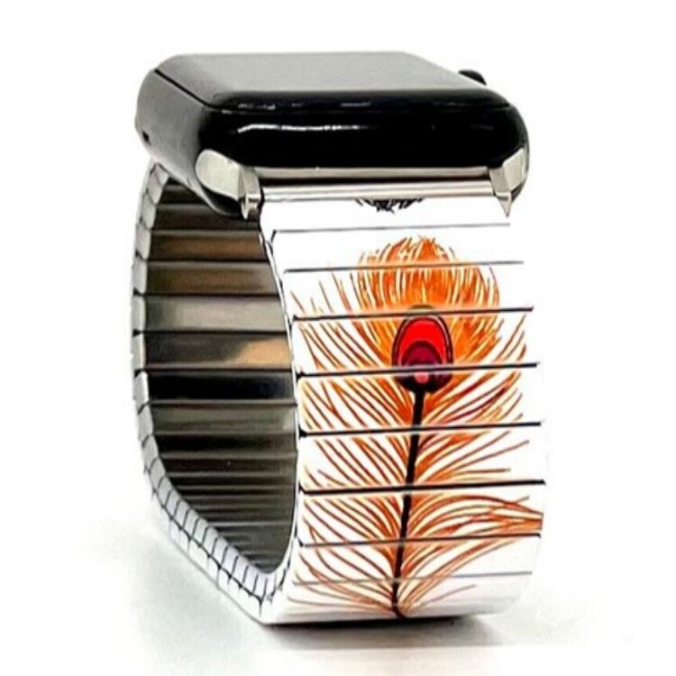 Stainless steel designer bracelet for smart watch 18mm handmade in London - Peacock feathers bright white