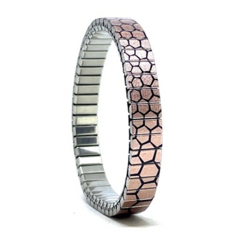 Stainless steel designer bracelet 10mm handmade in London - Polygon Tiles bees nest rose gold Metallic
