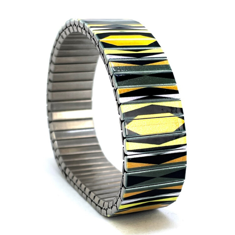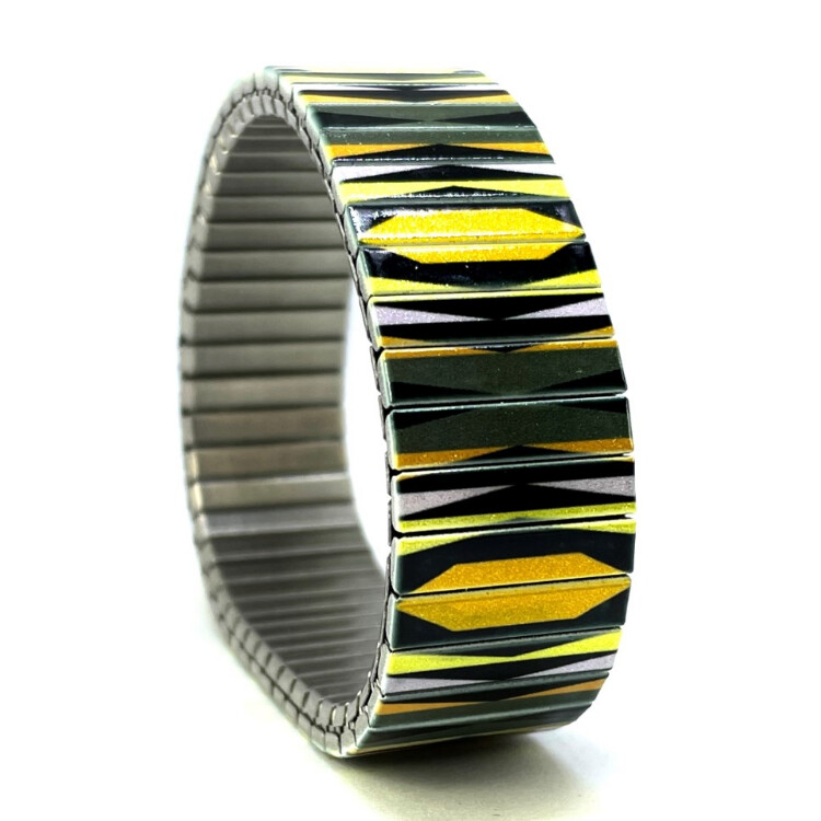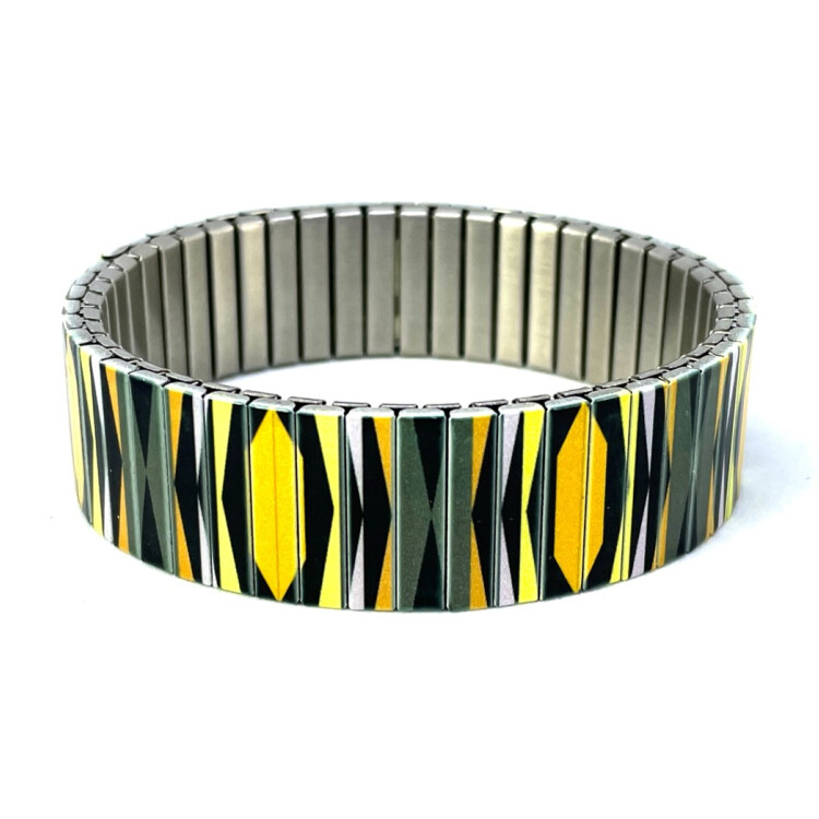 Stainless steel designer bracelet 18mm handmade in London - Polygon Tiles yelllow symmetry