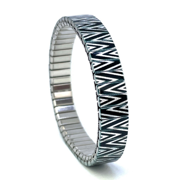 Stainless steel designer bracelet 10mm handmade in London - Polygon Tiles zigzag Metallic