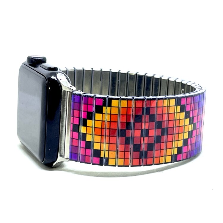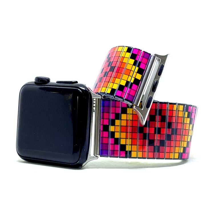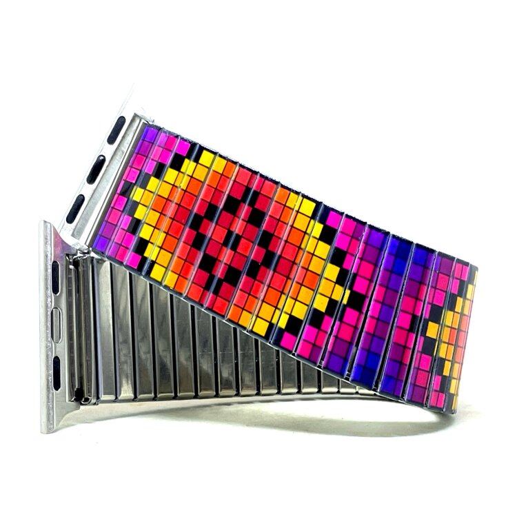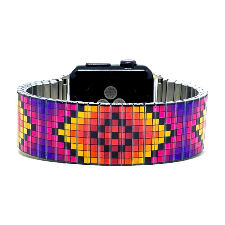 Stainless steel designer bracelet for smart watch 22mm handmade in London - Soho neon pixels