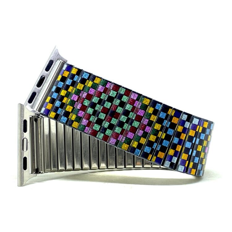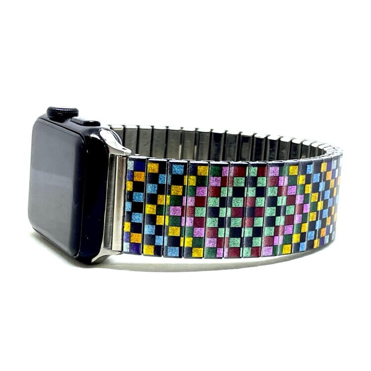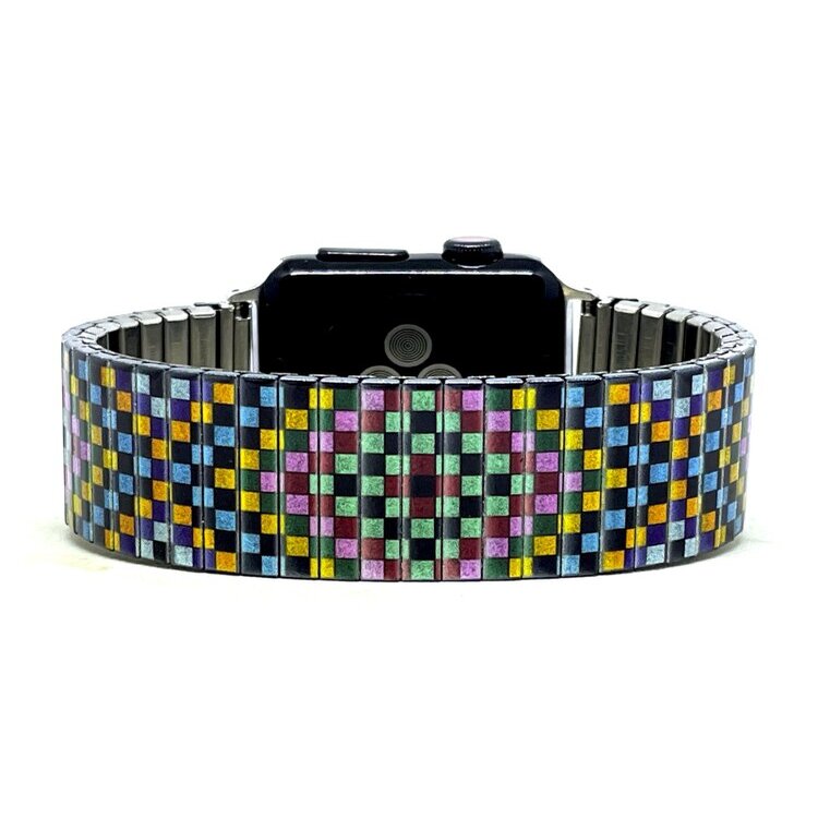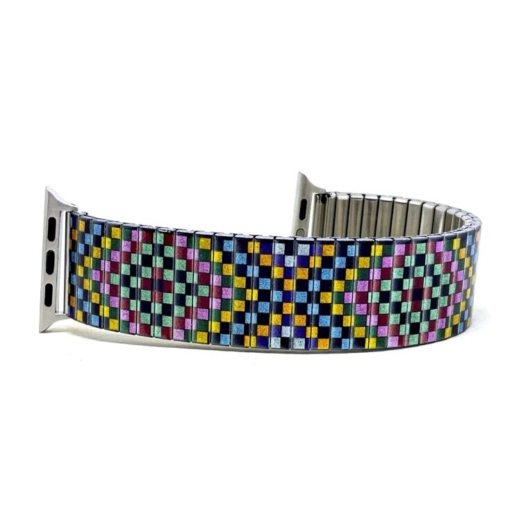Stainless steel designer bracelet for smart watch 18mm handmade in London - Soho pastel pixels Metallic