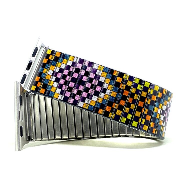 Stainless steel designer bracelet for smart watch 18mm handmade in London - Soho lustre pixels Metallic