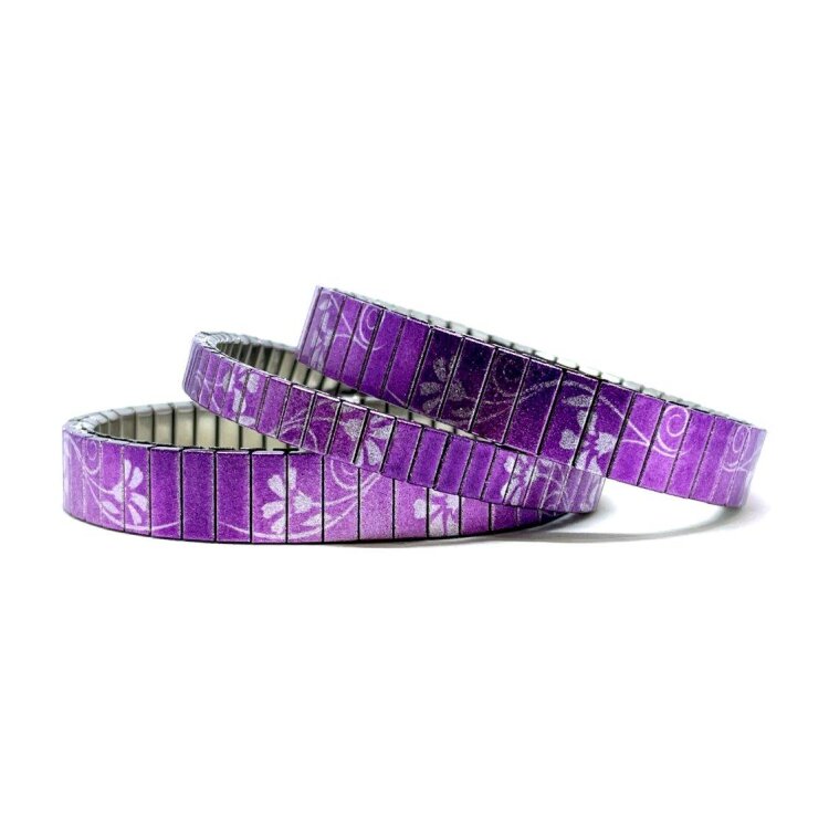 Stainless steel designer bracelet 10mm handmade in London - Solo vintage purple nude flower Metallic