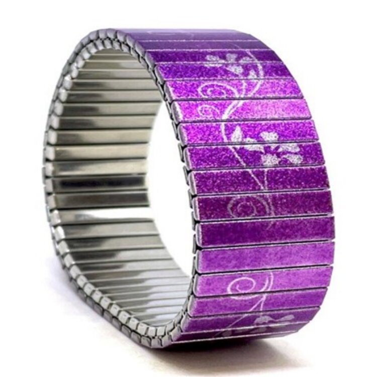 Stainless steel designer bracelet 22mm handmade in London - Solo vintage purple nude flower Metallic