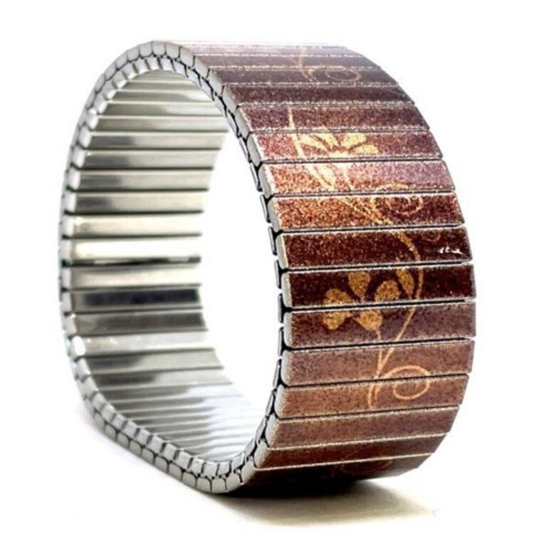 Stainless steel designer bracelet 22mm handmade in London - Solo vintage copper nude flower Metallic